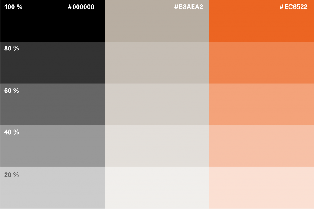 Odtiene hlavných a sekundárnych farieb používame hlavne pri online komunikácii na rôznych pozadiach, napríklad postov alebo na webstánke ak potrebujeme rozlíšiť bloky informácií.